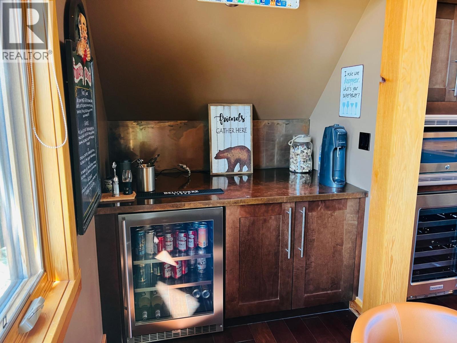 Perfection Plus! Castle Rock's peaceful neighbourhood is the address of your dream home. The custom timber frame design is one of kind.This amazing home offers luxury, comfort, and quality features to enhance your living experience. The residence has two large primary bedrooms with ensuites. Both the three- and four-piece ensuites have steam showers, wet coffee stations, walk in closets and a private deck area. Chefs will love the kitchen's large butcher block island with a prep sink, copper backsplash, highend appliances, a bar with wine and beer fridges in the kitchen, as well as plenty of storage. Amazing outdoor living space with kitchen, concealed lighting, BBQ, power burner, pot filler, sink, and beverage fridge area on the large deck. A beautiful water feature and pond make the outdoor space a sanctuary, and just open your door or window to be mesmerized by the trickling sound of water. Step inside the walk-out basement to find in-floor heating that makes it cozy year-round. Extra high ceilings and a large 1/2 garage to accommodate your pleasure boat and meet all your storage needs. Enjoy breathtaking vistas of the Purcell Mountains and Rockies as your everyday backdrop. This peaceful home on a no through road is the perfect retreat. 2557 Ledgerock offers the perfect balance of elegance and comfort. Book your viewing today to discover Castle Rock's outstanding lifestyle. (id:4069)