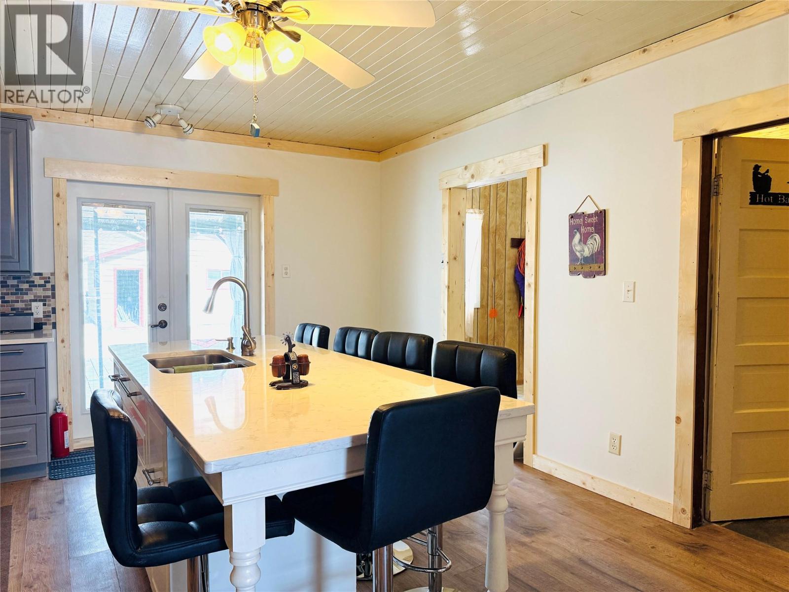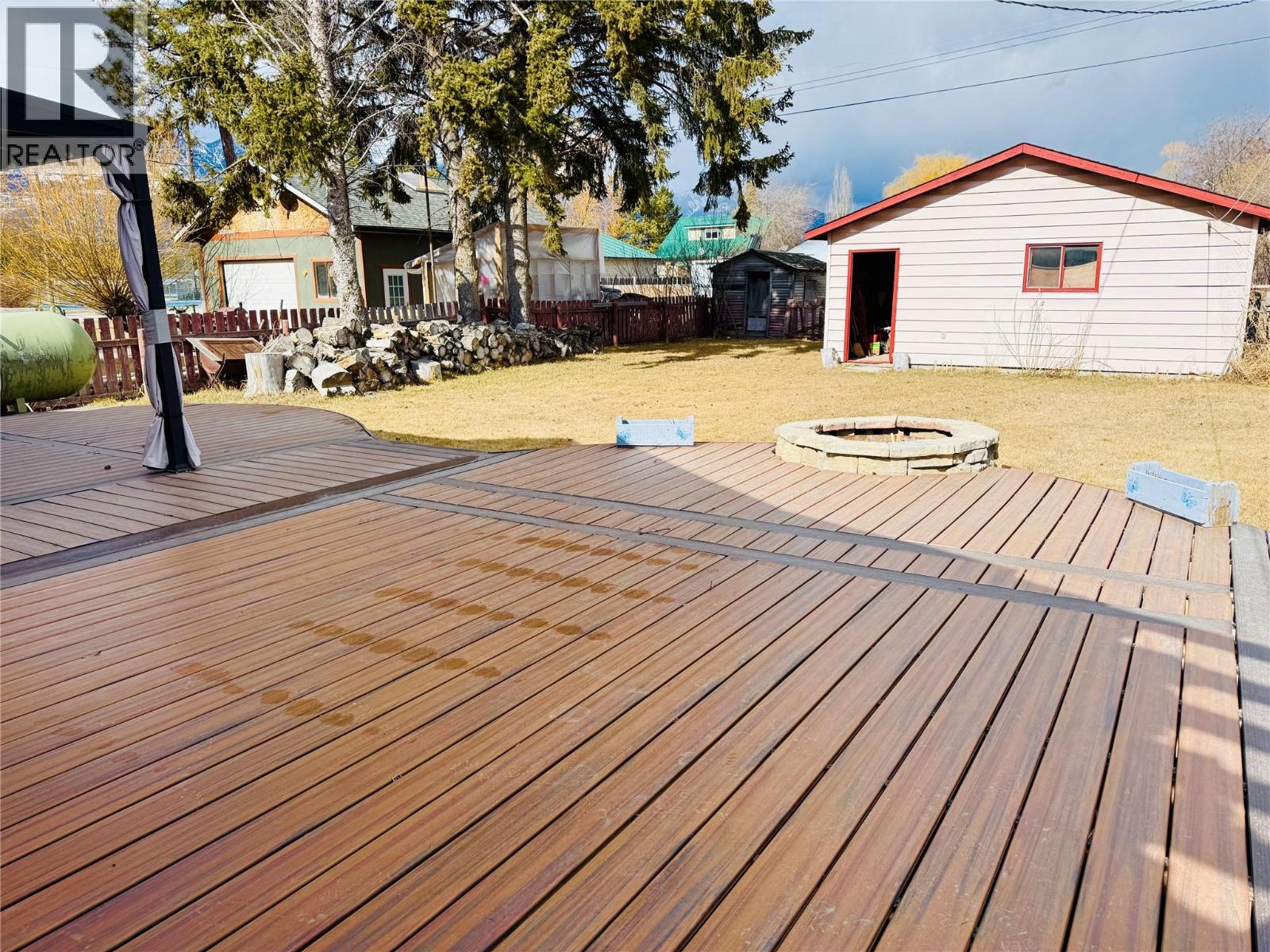 Charming Updated Home with Mountain Views & Incredible Outdoor Living Located in a quiet setting with beautiful mountain views, this cute historic home has been fully upgraded throughout the past 8 years while maintaining its original charm. This super functional bright kitchen offers built in appliances, pantry, propane stove, quartz countertops, and a large island with breakfast nook. The French doors lead to an incredible outdoor living space with Trex-style decking and a gazebo cover—perfect for relaxing or entertaining by the firepit. The spacious living area features vinyl plank flooring and a cozy pellet stove for natural wood heat. The updated bathroom includes a clawfoot tub, corner shower, and linen closet. Two comfortable bedrooms fit queen beds and offer cozy closet space. Outside, there is a welcoming front porch and a 50 x 155 ft lot filled with fruit trees, shrubs, and perennial flowers, plus a double garage with convenient alley access. Only 5 minutes to Columbia Lake’s public beach and just three houses from a park with playground, tennis courts, ball field and town amenities. A wonderful blend of character, upgrades, and location. (id:4069)